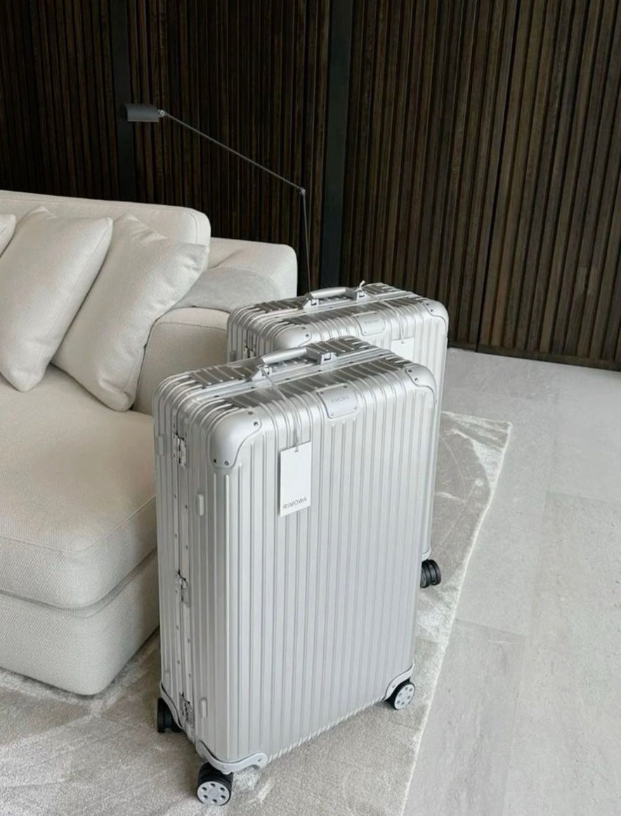 Pioneered by RIMOWA, this high-end system guarantees stable and effortless steering thanks to ball-bearing mounted wheels with cushioned axels.
